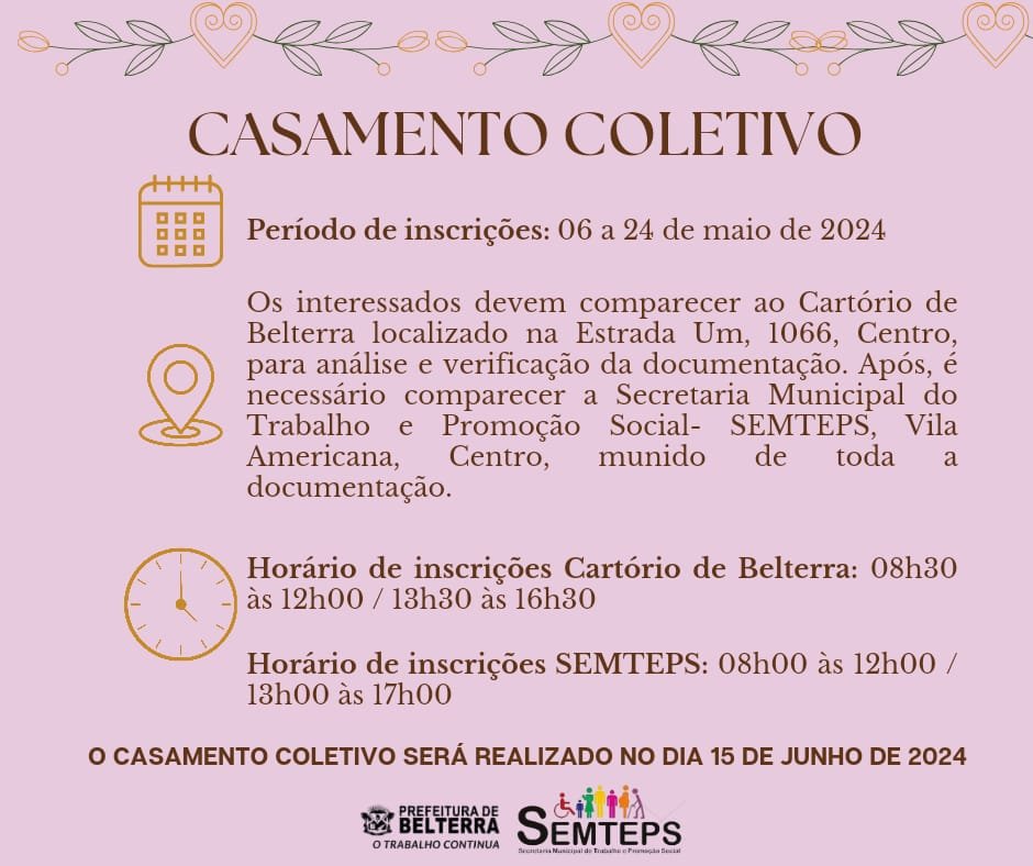 Começaram as inscrições para o Casamento Coletivo em Belterra. O evento organizado...