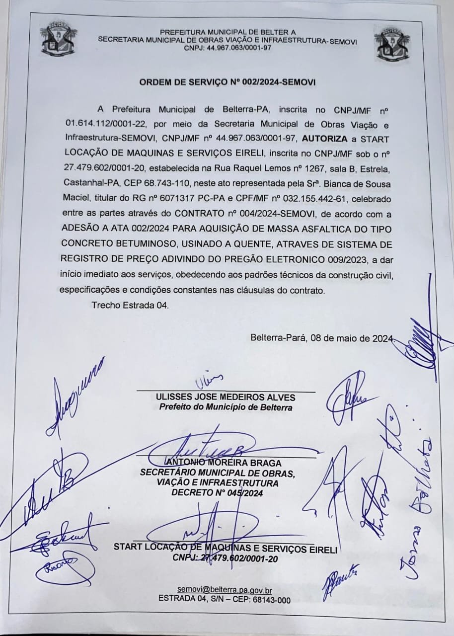 A Prefeitura de Belterra, por meio da Secretaria Municipal de Obras, Viação e...