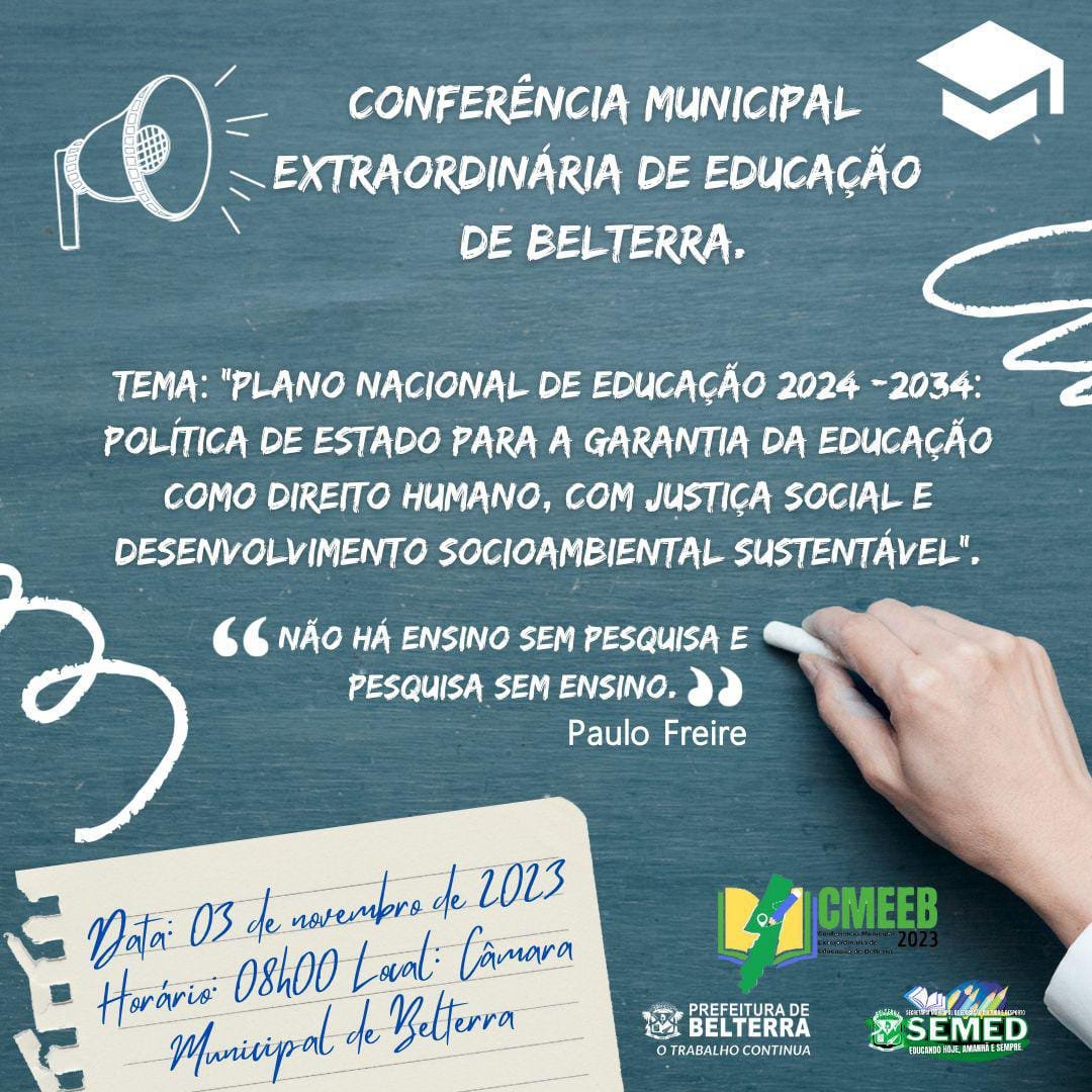 CONFERÊNCIA MUNICIPAL EXTRAORDINÁRIA DE EDUCAÇÃO ACONTECERÁ NESTA SEXTA-FEIRA (03), EM BELTERRA