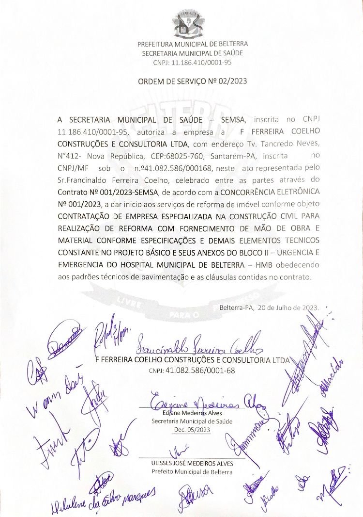 ASSINADA A ORDEM DE SERVIÇO PARA CONCLUSÃO E REFORMA DO SETOR DE EMERGÊNCIA DO HOSPITAL MUNICIPAL DE BELTERRA