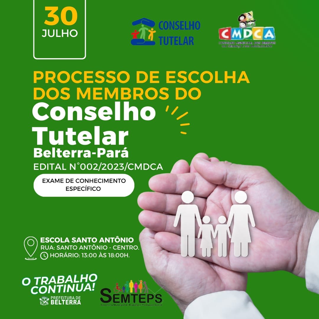 A aplicação das provas para os candidatos à vaga do Conselho Tutelar em Belterra será...