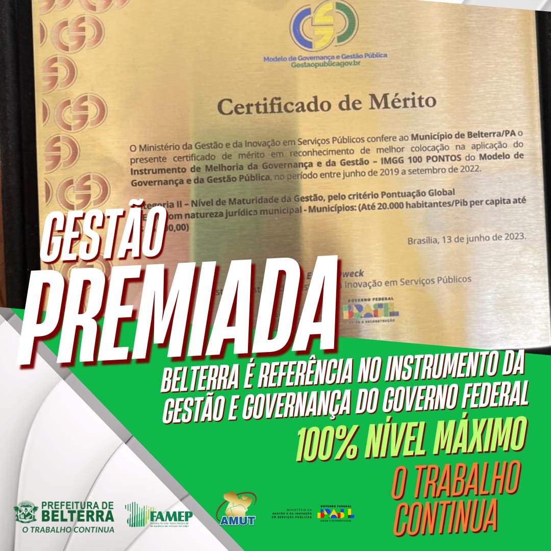 O município de Belterra recebeu o certificado de mérito em reconhecimento à melhor...