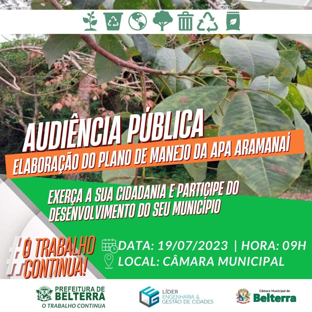 CONVITE PARA AUDIÊNCIA PÚBLICA, QUE VISA APRESENTAR E VALIDAR O PLANO DE MANEJO DA ÁREA DE PROTEÇÃO AMBIENTAL (APA) ARAMANAÍ