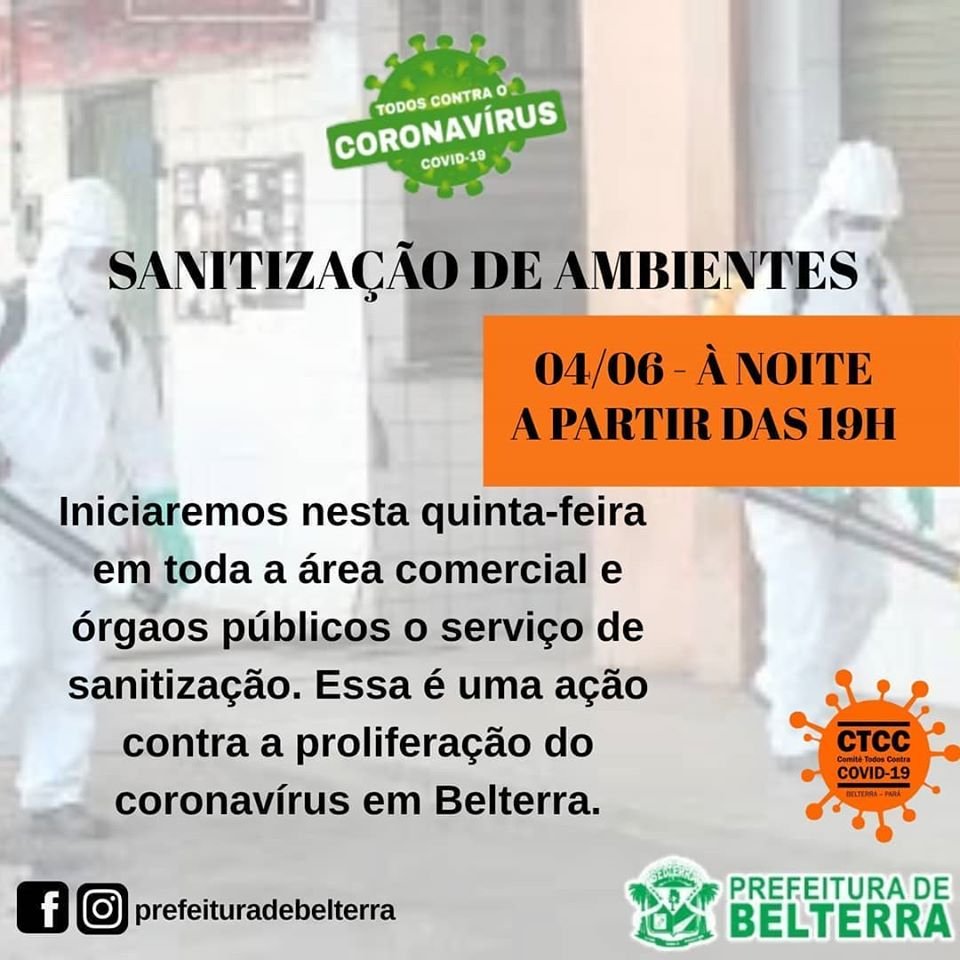 A PREFEITURA MUNICIPAL DE BELTERRA INICIARÁ NESTA QUINTA-FEIRA A SANITIZAÇÃO NA CIDADE