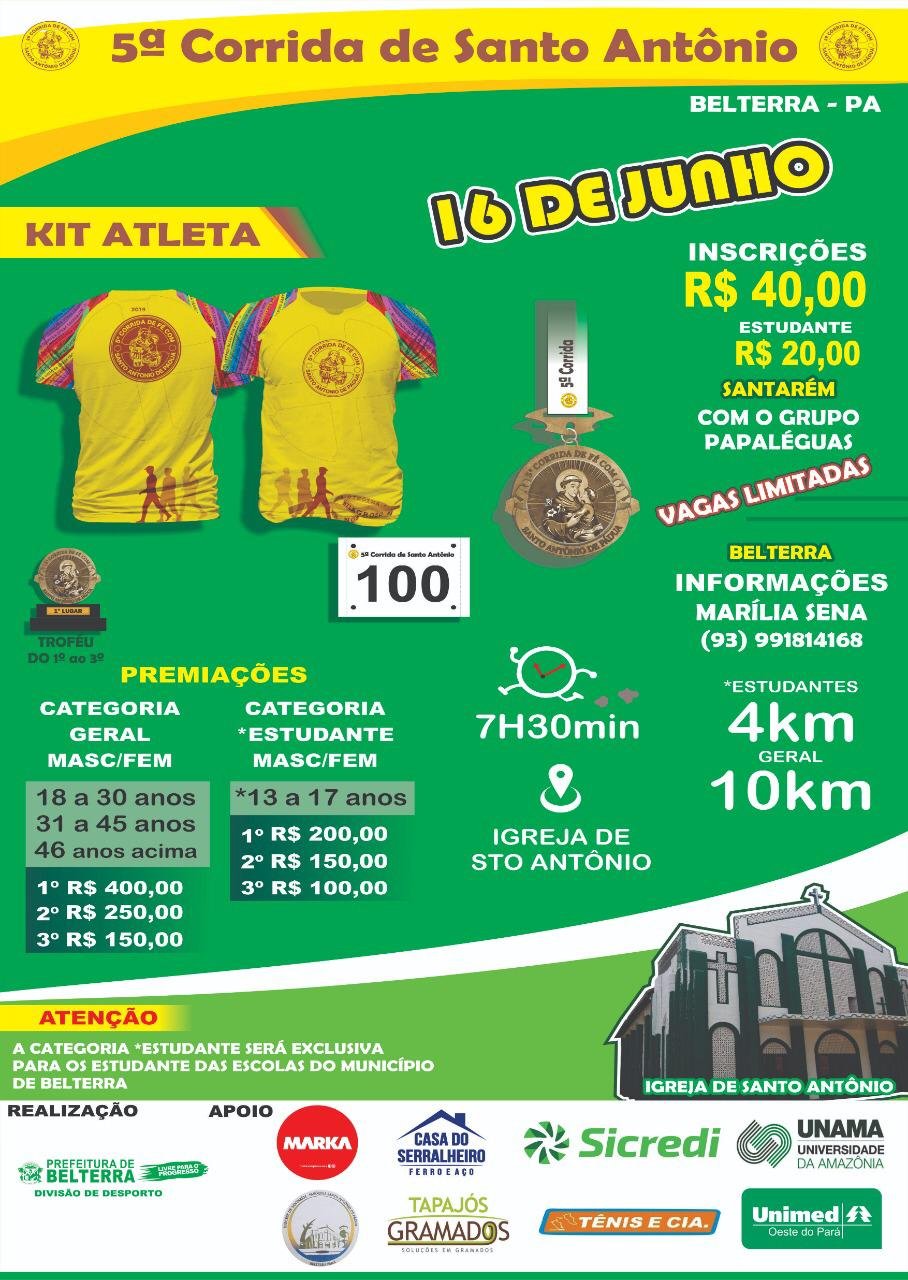 VENHA PARTICIPAR DA 5º CORRIDA DE SANTO ANTONIO QUE ACONTECERA DIA 16 DE JUNHO